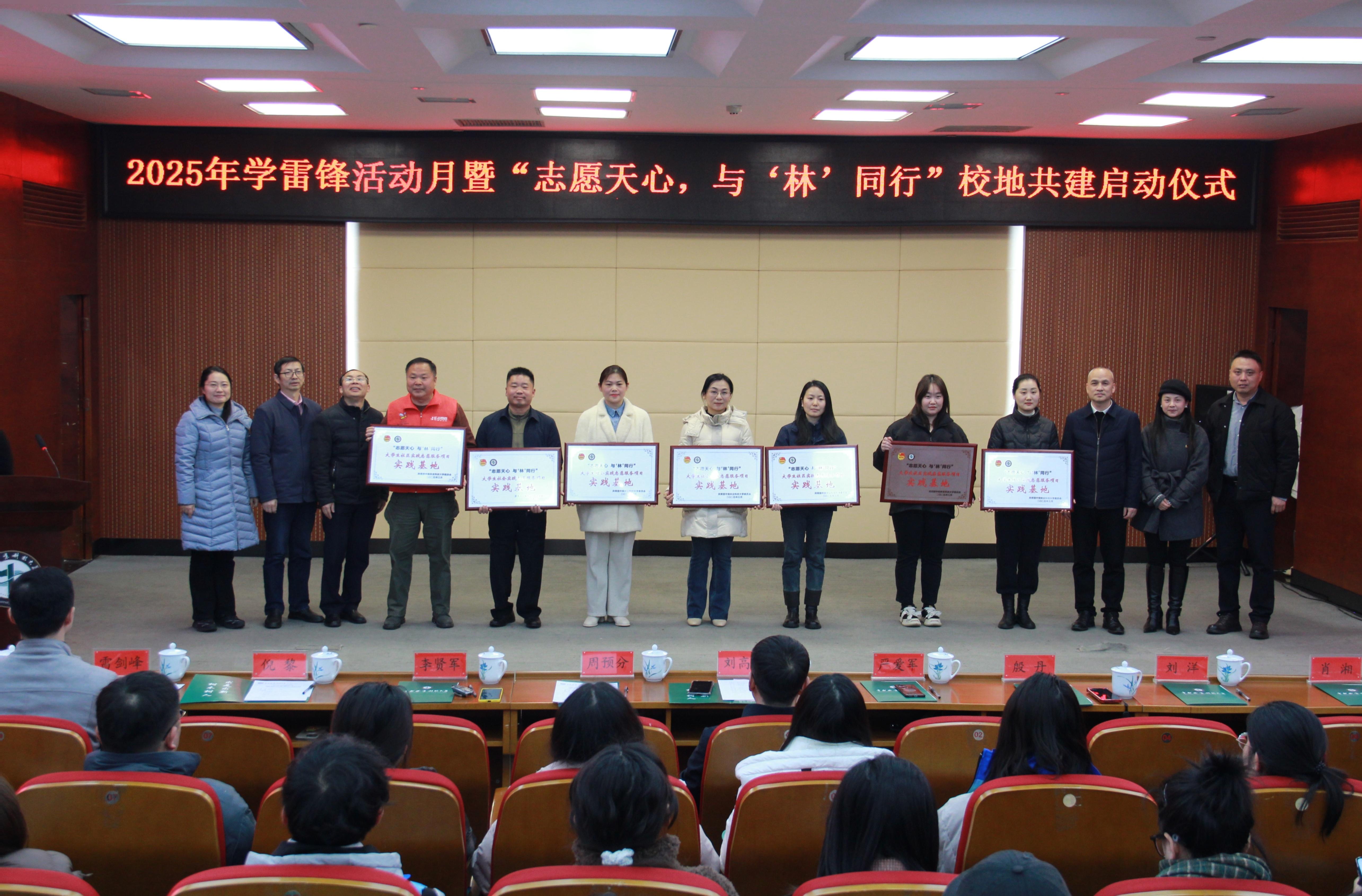 ▲学校举行学雷锋活动月暨“志愿天心 与‘林’同行”校地共建启动仪式