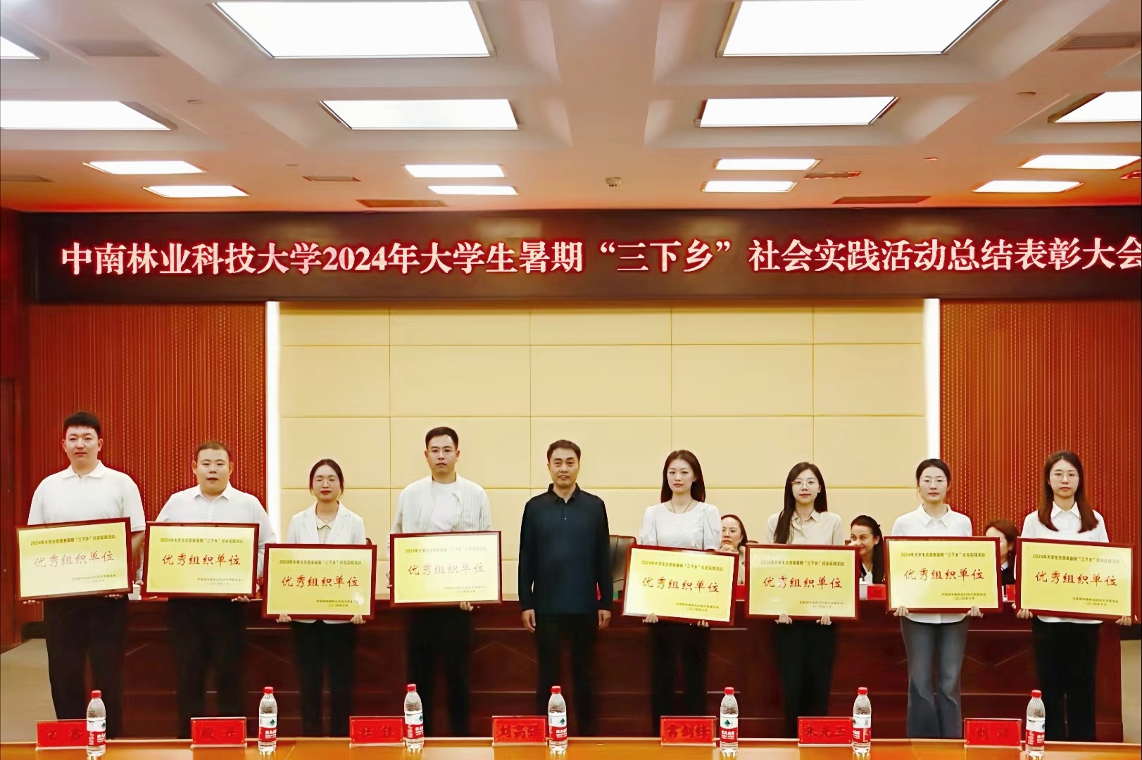 10月9日晚,我校在博文楼立德厅召开了2024年大学生暑期“三下乡”社会实践活动总结表彰暨优秀实践团队交流分享会。校党委委员、副校长刘高强,湖南省林业局团委书记杜佳、天心区团委书记雷剑锋,学工部、研究生院和校团委等部门负责人出席本次会议。各学院团委书记、获奖代表以及志愿者300余人参加会议。