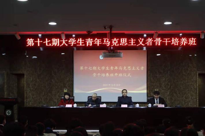 12月13日19:00,中南林业科技大学第十七期大学生青年马克思主义者骨干培养班在图书馆报告厅开班。党委学工部部长严爱军,校团委书记李凯,校团委副书记殷丹出席开班仪式。来自校、院两级学生会主要干部、学生社团负责人260余名学员参与本次培养班学习,仪式由殷丹主持。