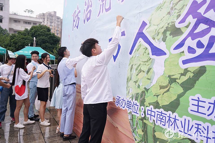 6月17日,是第25个“世界防治荒漠化和干旱日”。上午,由湖南省林业局主办,中南林业科技大学承办的“防治荒漠化·你我在行动”万人签名活动在我校举行。省林业局副巡视员张凯锋、学校副校长陈冬林、省林业局造林绿化处、宣传中心,学校党委宣传部、林学院、团委等部门负责人及我校近300名志愿者参加此次活动。