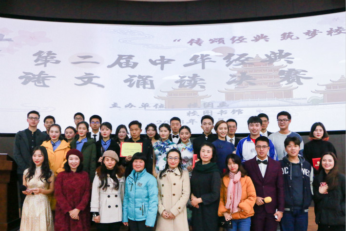 11月22日晚,以“传颂经典,筑梦校园”为主题第二届中华经典诗文诵读大赛决赛在图书馆三楼报告厅举行。校图书馆副馆长王运峰、校团委副书记殷丹、党委宣传部校报编辑部主任刘金环、马克思主义学院姚遥、图书馆阅读推广部副主任吴旭艳出席本次活动并担任评委。近300余名学生参加此次活动。