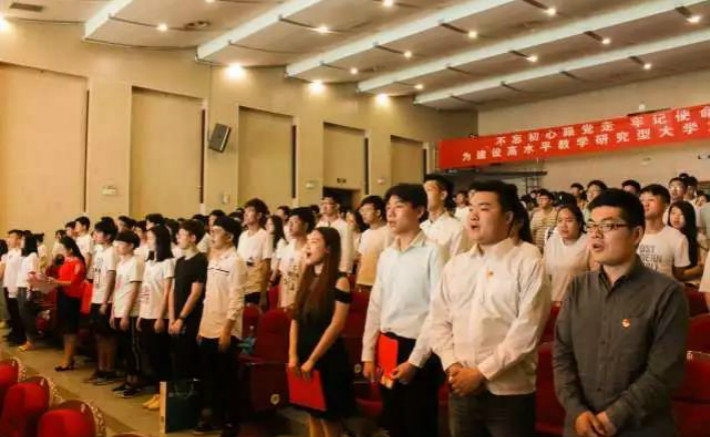 在新团员入团仪式中,殷丹为新团员代表佩戴团徽、颁发团员证。全体新团员在陈瑜的带领下宣誓。新团员代表宋湘嫩同学发言,她表示很自豪能够加入共青团,并承诺将严格按照共青团员标准要求自己,认真履行团员义务。老团员代表周泉森同学表示将不断丰富完善自身,努力提升思想认识,自觉培育和践行社会主义核心价值观。