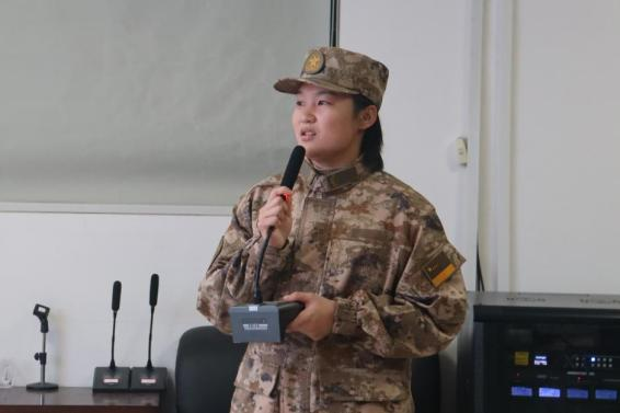 章颖同学曾服役于中国人民解放军火箭军新疆某部,她首先从征兵背景、优待政策、报名条件、服役选择以及军旅生活等方面进行详细介绍,内容涵盖义务兵家庭补助、大学生一次性入伍金、艰苦地区补贴等经济优待政策。接着,她结合自己两年的军旅经历为同学们分享了自己的入伍心路历程和军队生活情况。在互动环节,通过同学们的提问,她还从征兵的体检、政审、体能测试等环节与同学分享一些注意事项。