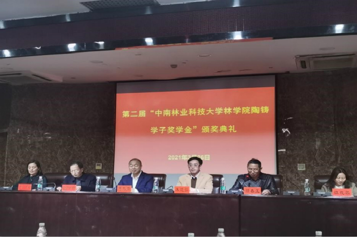 青春当勉励,拼搏铸辉煌。林学院陶铸奖学金始终秉持着务实、创新的理念,将求是求新、树木树人的校训和包容、诚朴、坚毅、公允的校风融入其间、不断发扬。本次颁奖典礼中,林学院博士研究生及本科生共24人人获得本次奖学金,并由陈振雄、朱道弘为其颁奖。其后,陈振雄回顾了在林科大的学习经历以及毕业后三十年的人生经历,对学院取得的成果表示肯定和赞赏。他讲到“大学生要做一个堂堂正正的人,做一个对社会有用的栋梁之材”,其谆谆教导使每一位学子深受裨益。