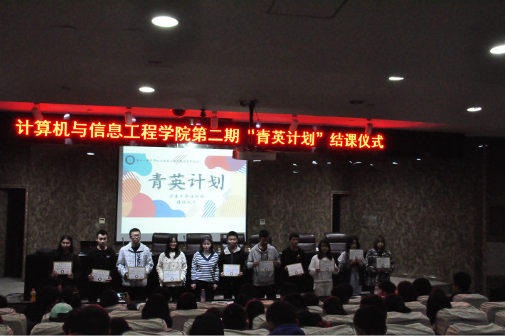 11月23号晚7点,计算机与信息工程学院第二届青英计划结课仪式在图书馆立言厅举行。学院团委学生会主席及各部门部长出席,学生会全体干事参加。