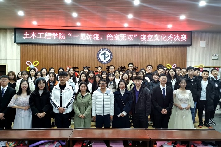 11月29日19:00,土木工程学院“一见钟寝,绝室无双”寝室文化秀决赛在土木楼501报告厅举行。土木工程学院党建就业辅导员蒋龙、2019级辅导员张琼、2017级辅导员、团委书记邓云、2018级辅导员蔡旭伟以及第二十三届团委学生会主席团书记处成员出席并担任了本次决赛的评委,各部门部长、副部长以及2019级各班学生代表也参加了本次活动。