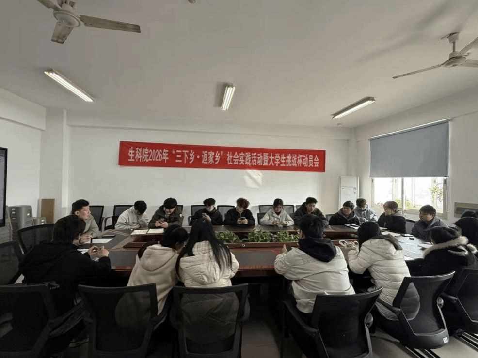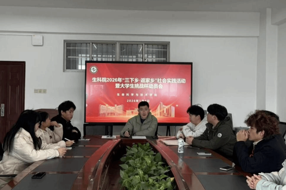 为引领学生在实践中受教育、长才干、作贡献,在创新中勇突破、敢挑战、攀高峰,生命科学与技术学院于1月6日在求是楼1212会议室召开2026年“三下乡·返家乡”社会实践活动暨大学生“挑战杯”竞赛动员会,学院团委书记杜厚强、主要学生干部及各年级班长参与会议。