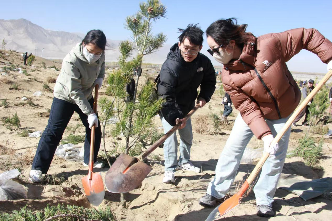 3月12日,雅鲁藏布江畔的风沙裹着春寒,山南市扎囊县沙丘上5000余名干部群众挥锹植绿的身影却格外炽热。国家公园与旅游学院第六批援藏实习生管思雯、万佳杰、赵媛媛,作为刚加入湖南省第十批援藏工作队的新生力量,在这场高原生态建设的生动课堂中,感受到了绿色实践与精神传承的魅力。